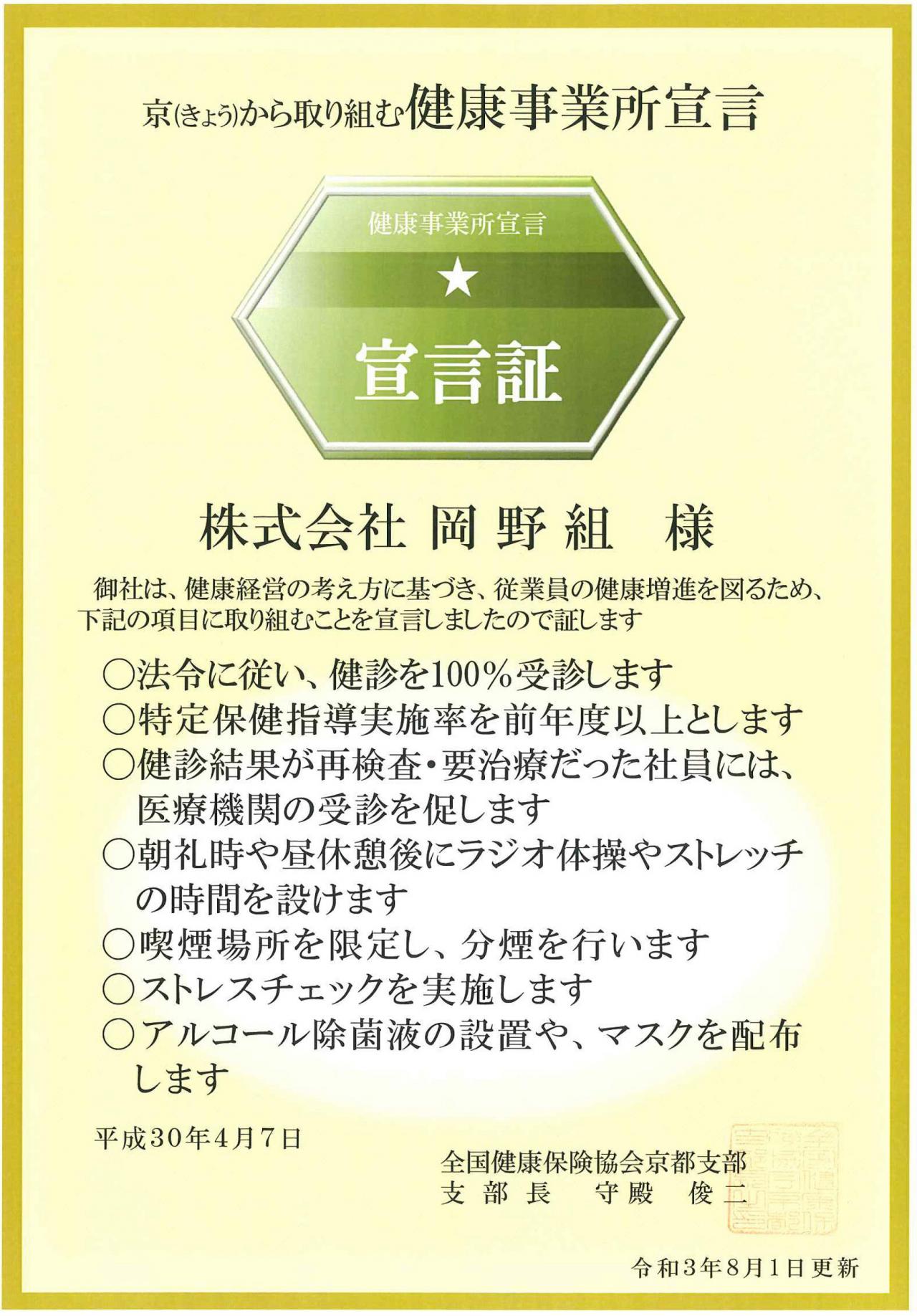 健康経営の考え方に基づき、従業員の健康増進を図るため、